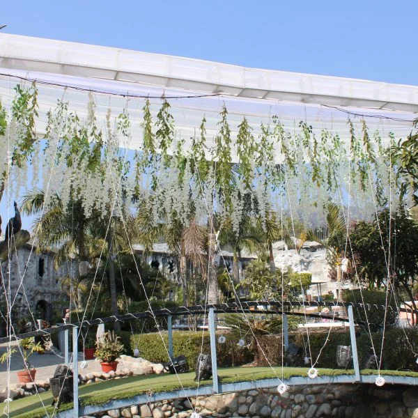 Exchange vows under a stunning floral canopy set against the dramatic backdrop of our cave-themed resort, merging nature with luxury.